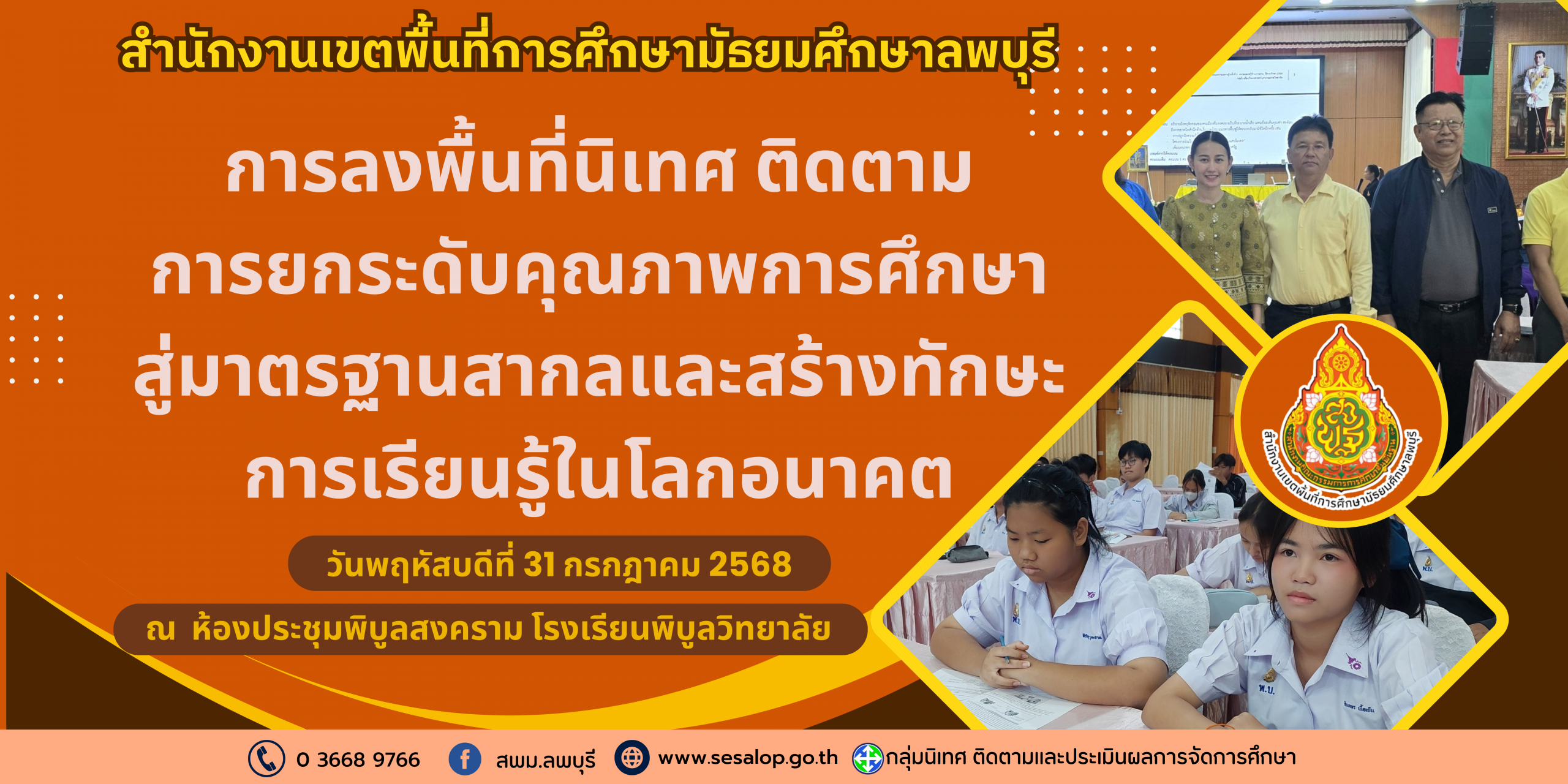 วันพฤหัสบดีที่ 31 กรกฎาคม 2568 ดร.กฤษ ละมูลมอญ ผู้อำนวยการสำนักงานเขตพื้นที่การศึกษามัธยมศึกษาลพบุรี